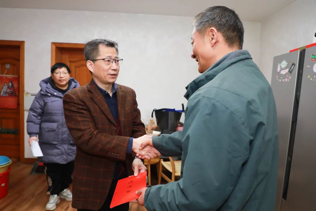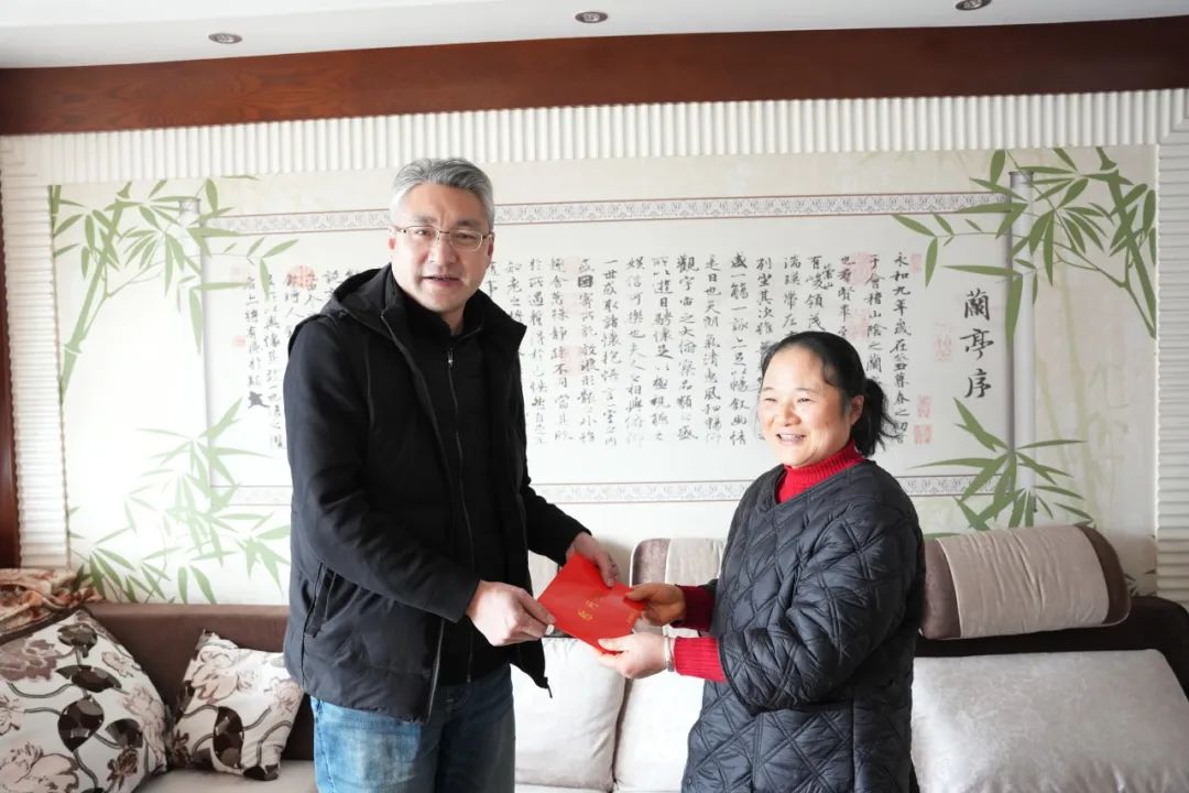 公司向导孙爱保亲热探望高龄退休员工与患病员工,仔细询问他们的身体状态和家庭生涯情形,为员工送上慰问金,祝愿他们度过一个温暖、祥和的新春佳节。